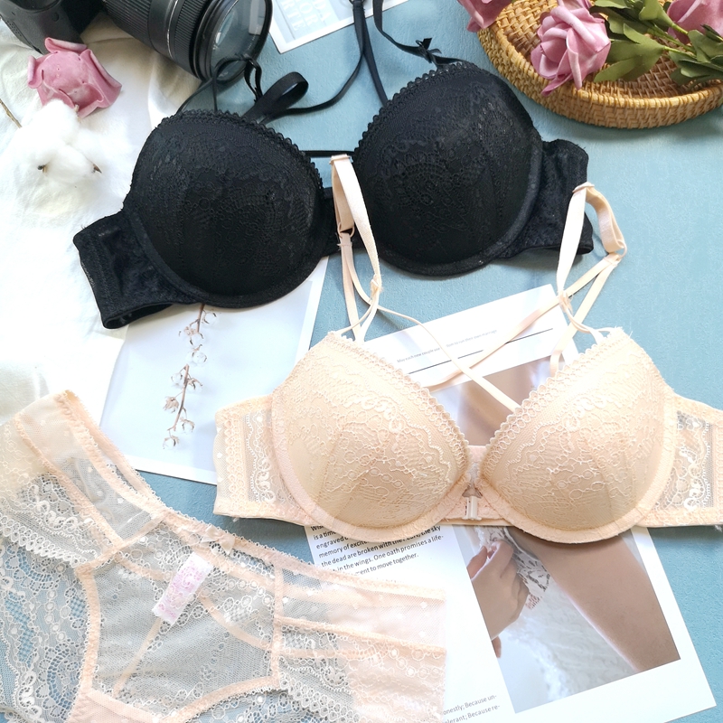 Xiaofen recommended lingerie suit to gather female small breasts thin down thick and sexy and comfortable black beauty back lingerie suit