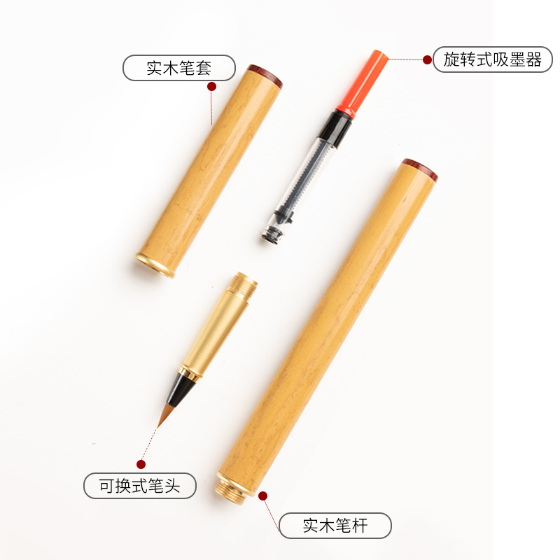 Bamboo and wood (pen-style small block) pen with pen head and pen with pen (pen style small block block) brush head pen with pen head and ink