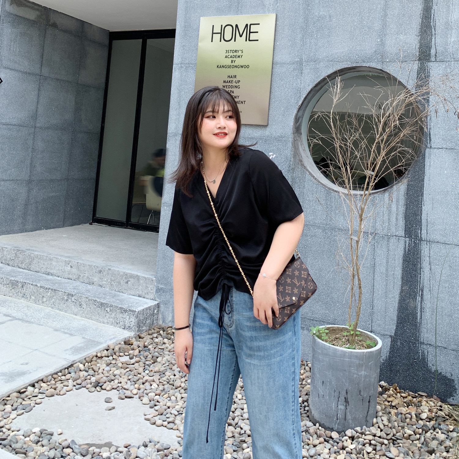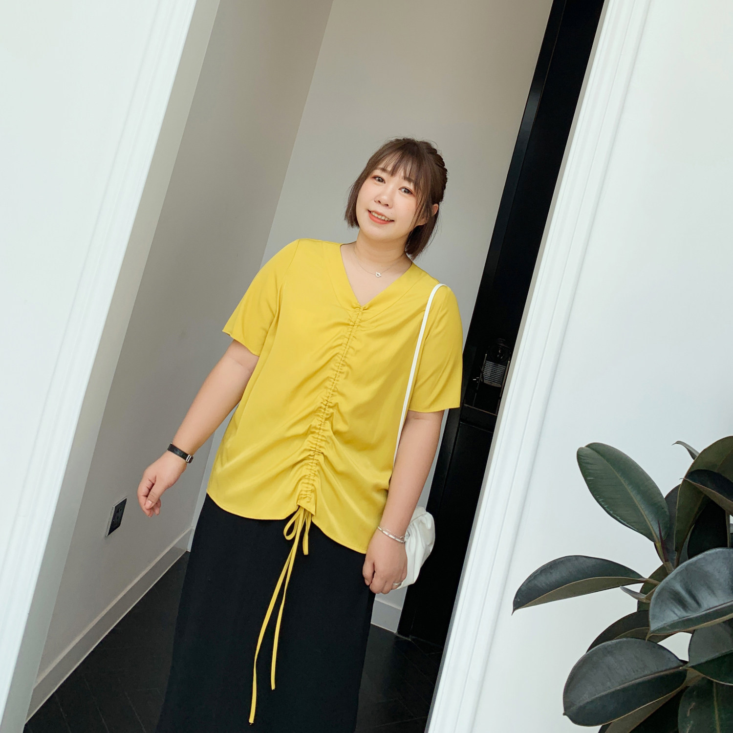 ALIN custom large size women's fat sister T-shirt women's 2020 Xiayang style fashion pleated chiffon shirt BM wind top