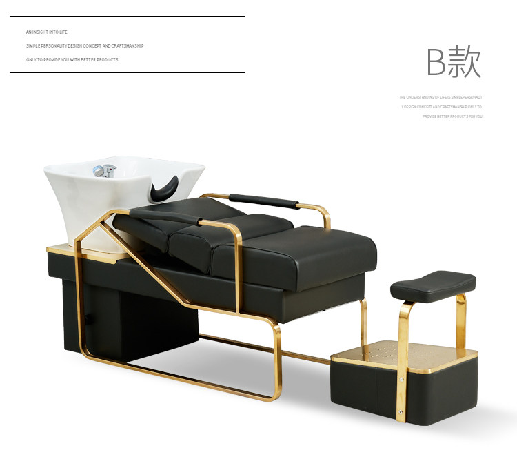 High-end stainless steel gold-plated shampoo bed High-end gold-plated net red shampoo bed High-end gold-plated gray shampoo bed High-end gold-plated peacock blue High-end titanium alloy black glass fiber high-end white steel glass fiber shampoo bed High-end titanium alloy