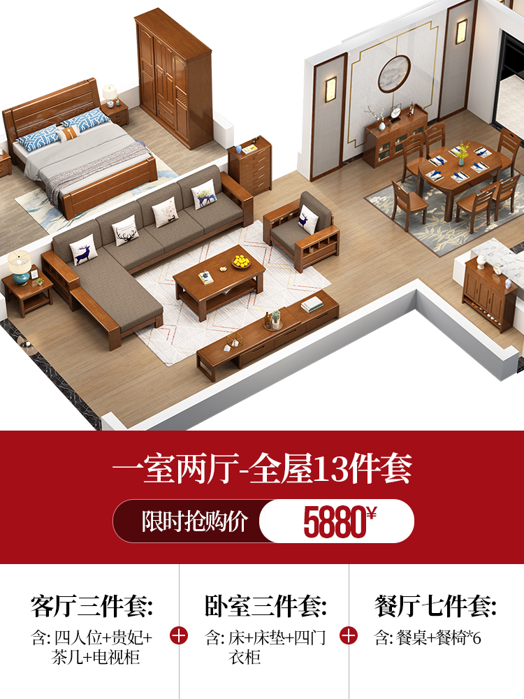 Five people, chaise, four people, chaise, coffee table, TV cabinet, one table, six chairs, bed, mattress, 1 1 3, coffee table, TV cabinet, four people, chaise, coffee table, TV cabinet, one table