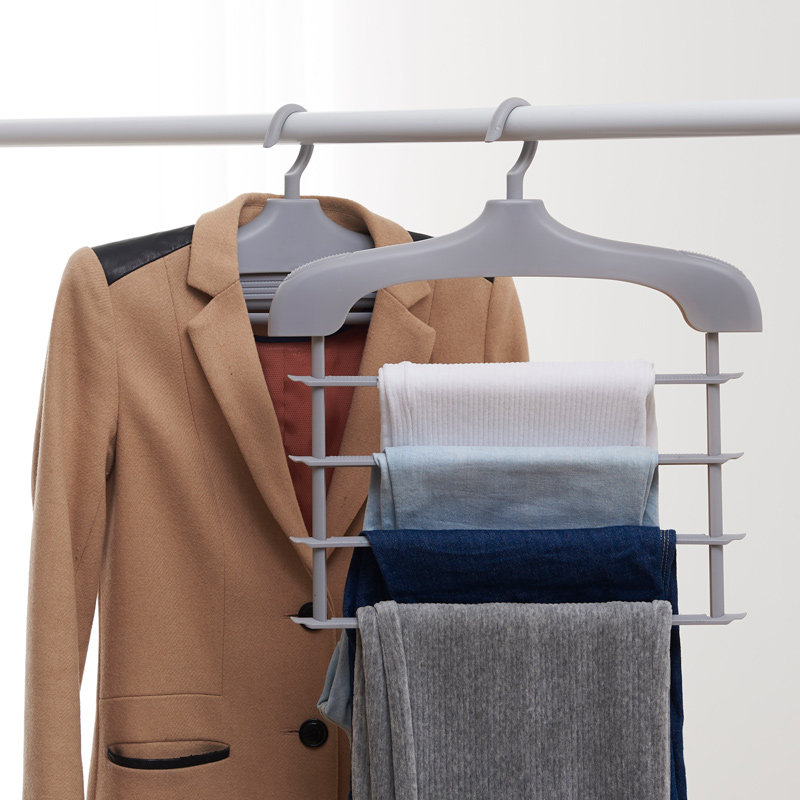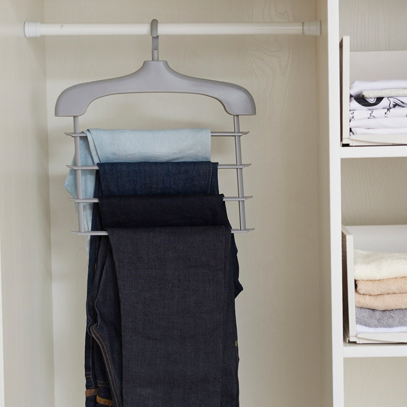 Multifunctional seamless multi-layer telescopic folding trousers rack word household plastic trousers rack wardrobe storage artifact trousers hanger