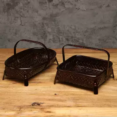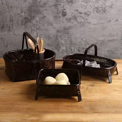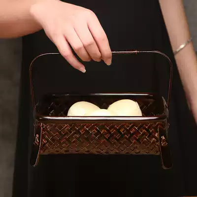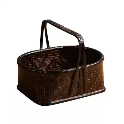 Handmade bamboo woven portable basket tea set storage box snacks fruit basket rattan basket retro basket Japanese snack basket