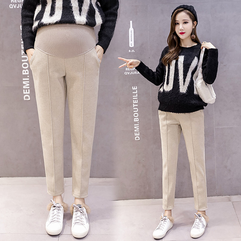 Maternity clothing autumn and winter clothing net red harlan pants fashion woolen casual pants autumn clothing belly pants fashion straight pants women
