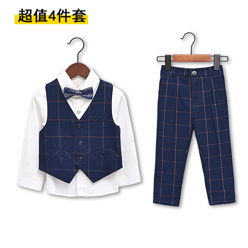 Children's suit suit Three sets of handsome spring and autumn season boy acting out of flower boy gown boy West suit Inn Wind