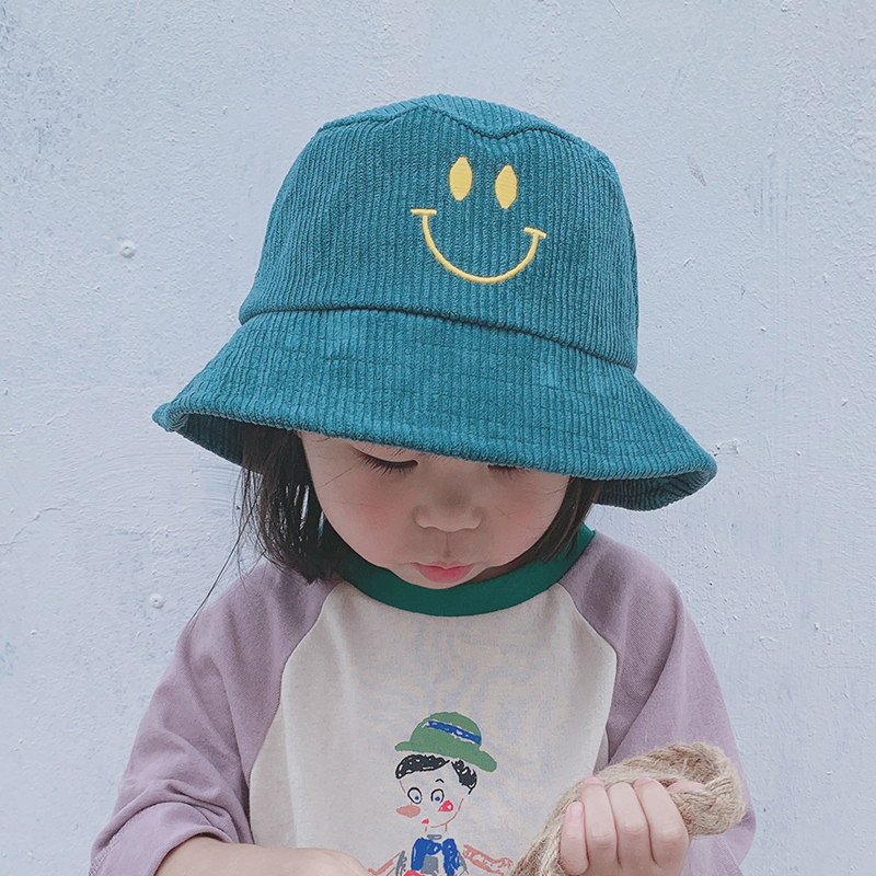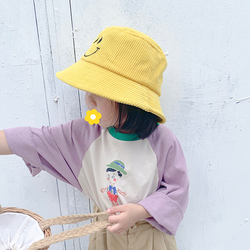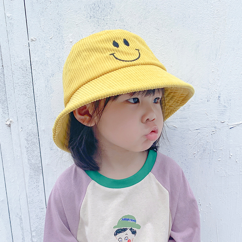 Child fisherman hat girl light Core suede Smiling Face Hat Boy Korea Fall Out Basin Hat Baby Fisherman Hat Tide