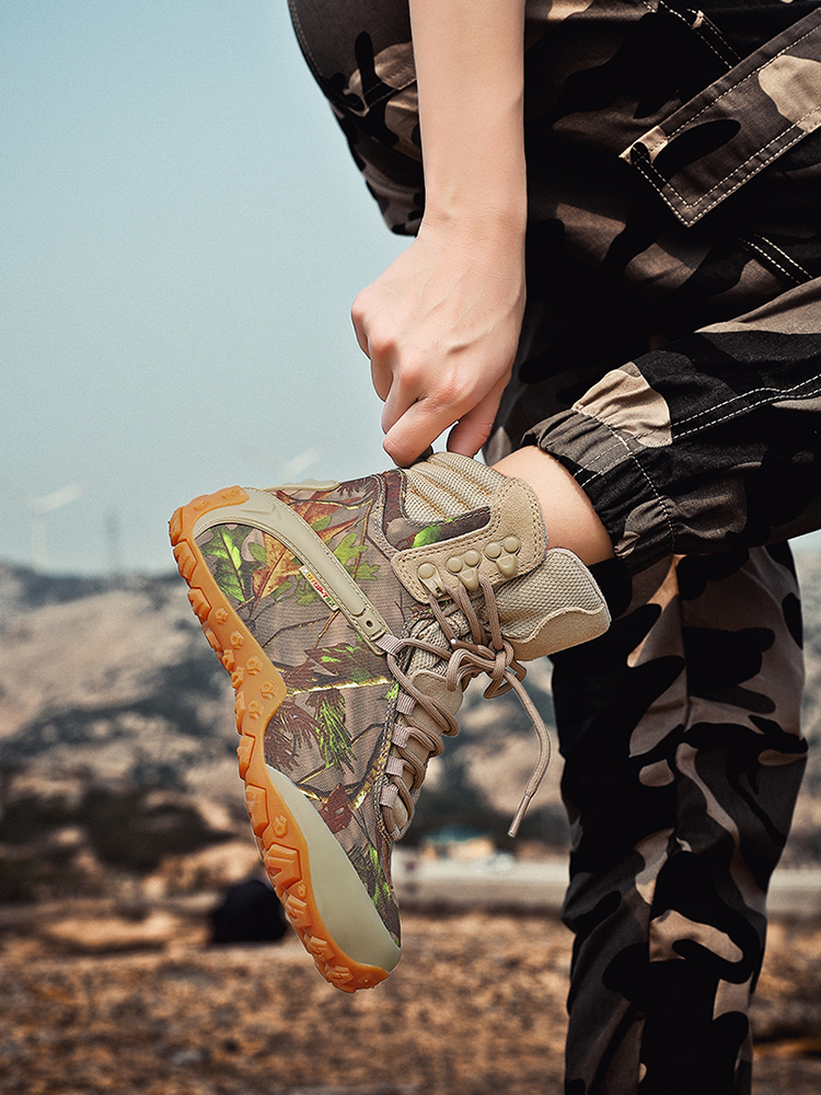 Outdoor hiking shoes men's summer waterproof and non-slip wear-resistant hiking shoes women's desert boots high top climbing small yellow shoes