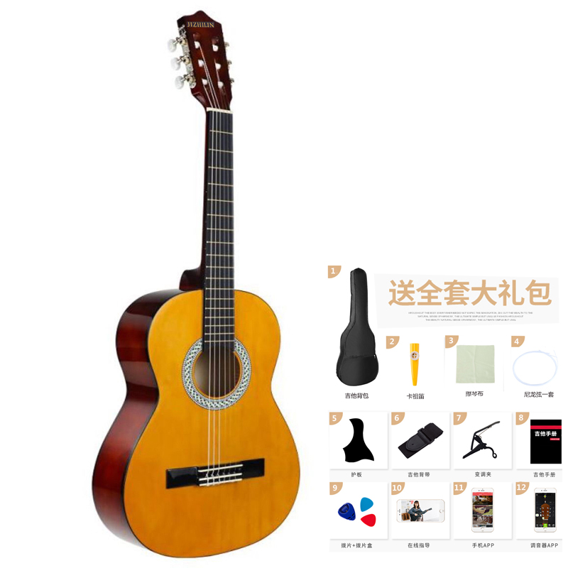 Single Board Electric Box 39 Inch Classical Guitar Girls Male Introductory Beginner Beginner retro nylon String Self-learning instrument send full set-Taobao