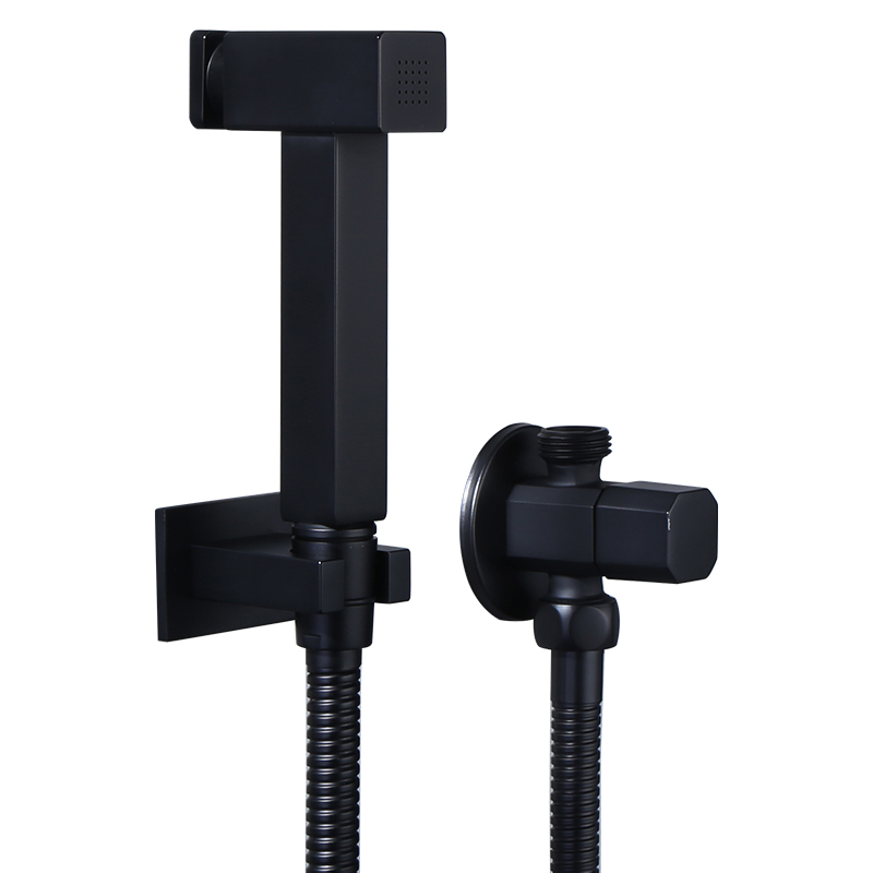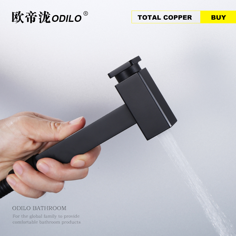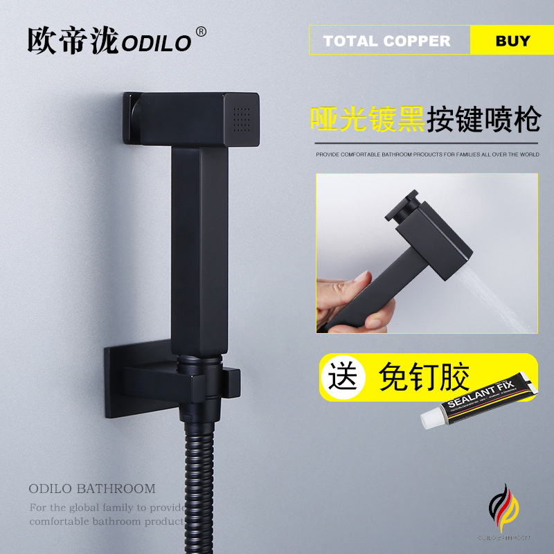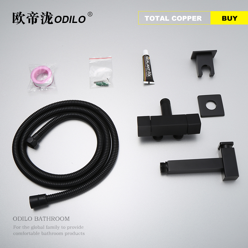 Oudilong bidet toilet spray gun flusher nozzle set one in two out three-way angle valve free of punching black
