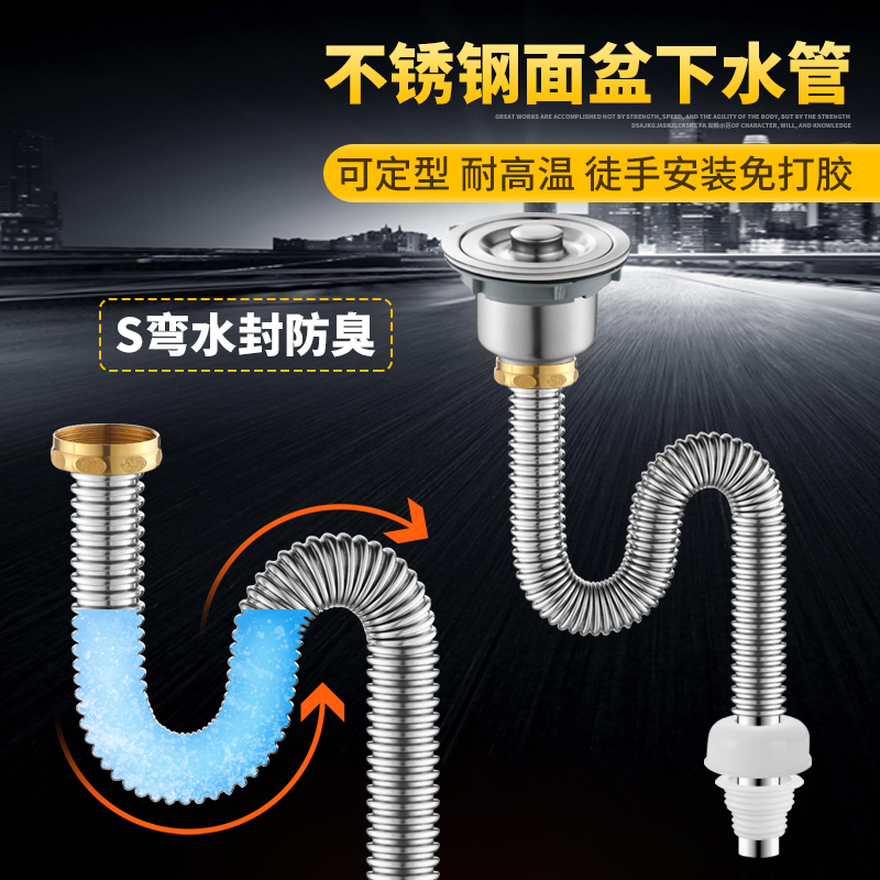 Kitchen stainless steel sink Lower water pipe Lower water pipe Single sink lengthened drain pipe washing basin High temperature resistant and odor-resistant accessories