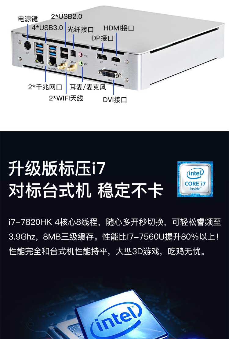 Make up for the beauty cool i7-7820hk gameplay microstar 4G graphics card for chicken game design mini computer office small host