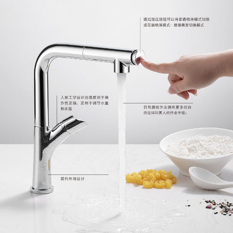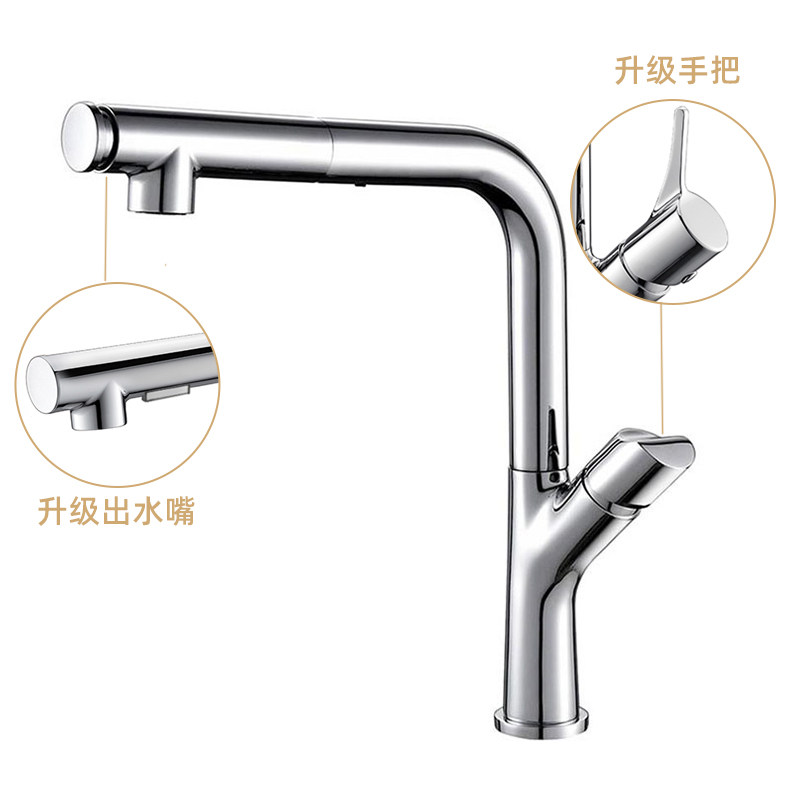 Slow kitchen faucet all copper chrome plated simple pull hot and cold kitchen sink wash basin faucet 360 degree rotation