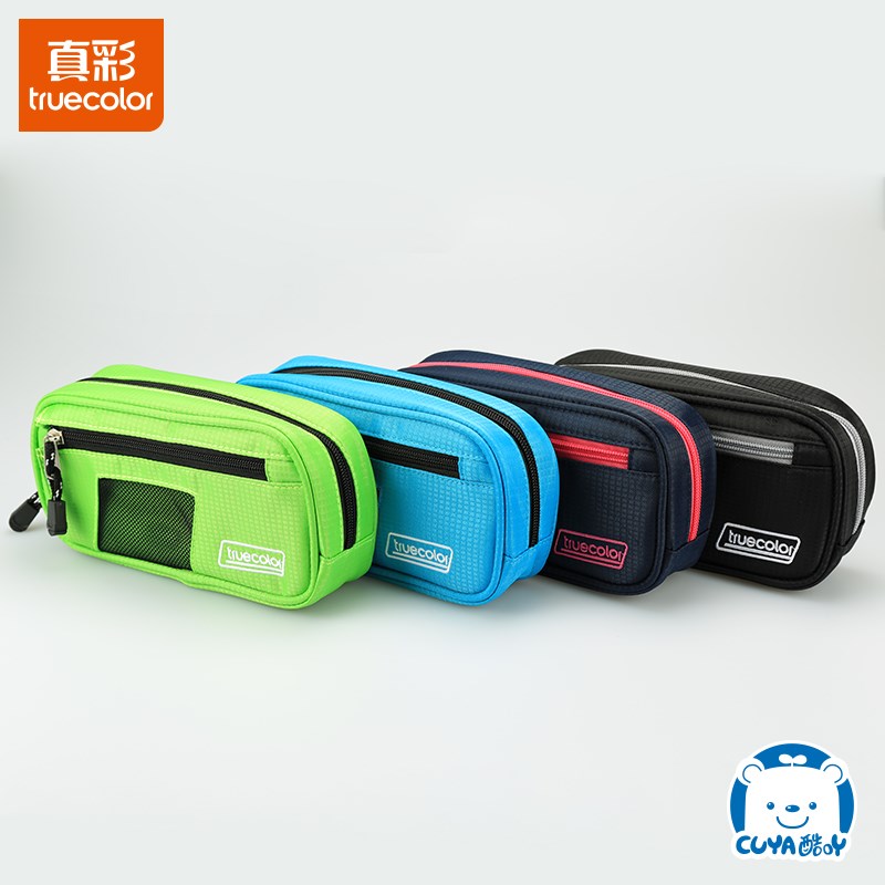 True color pencil bag primary school boys and girls Korean version simple pencil bag canvas multi-layer large-capacity children's pencil bag storage bag