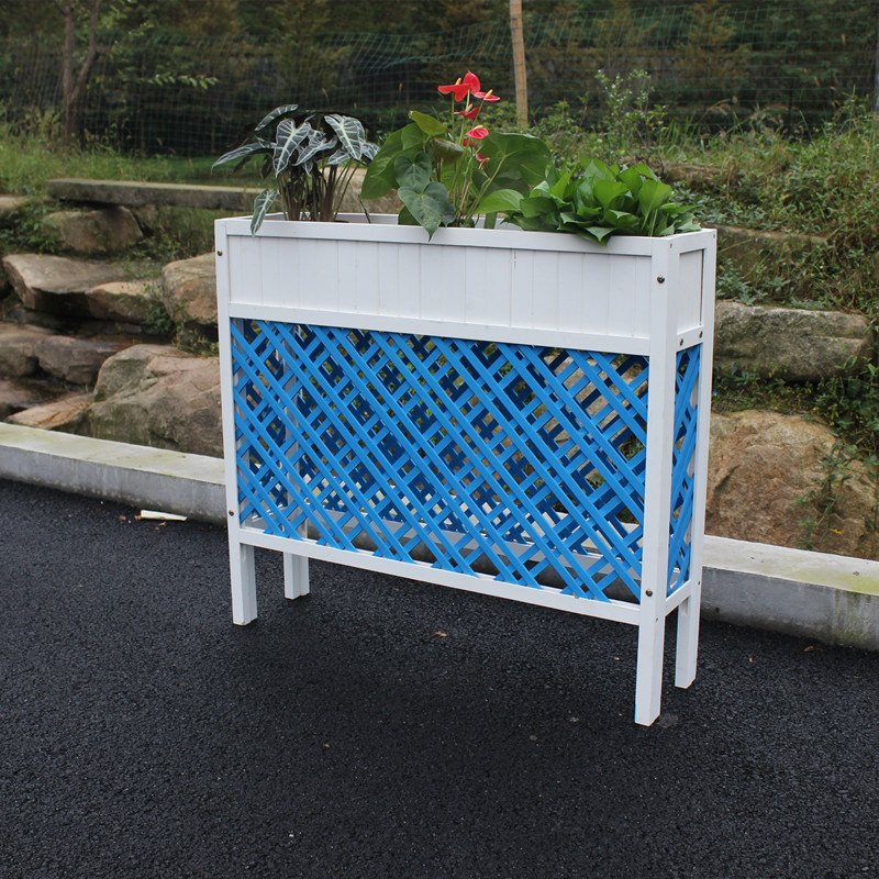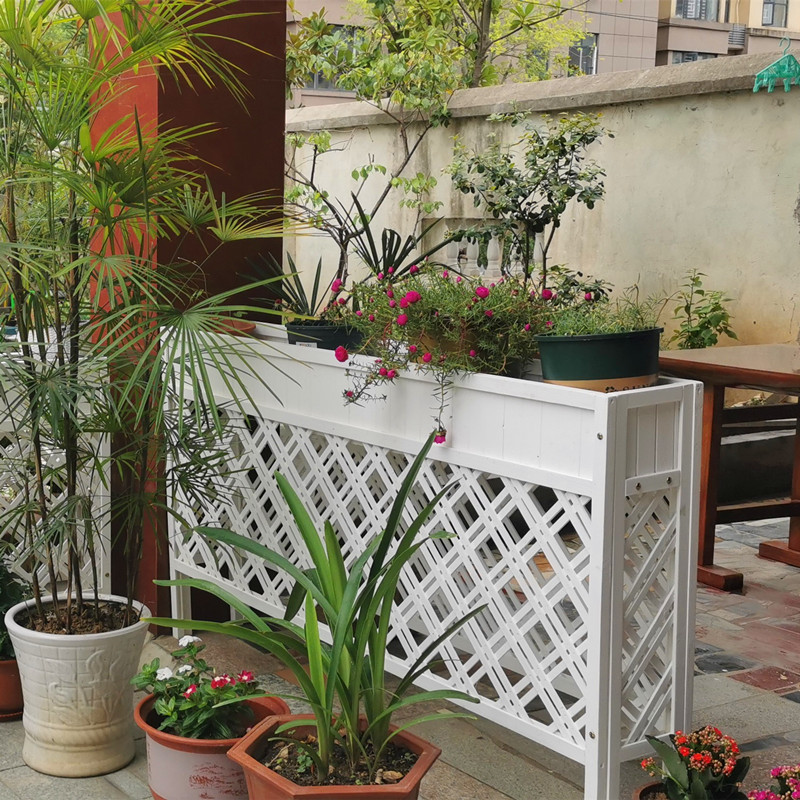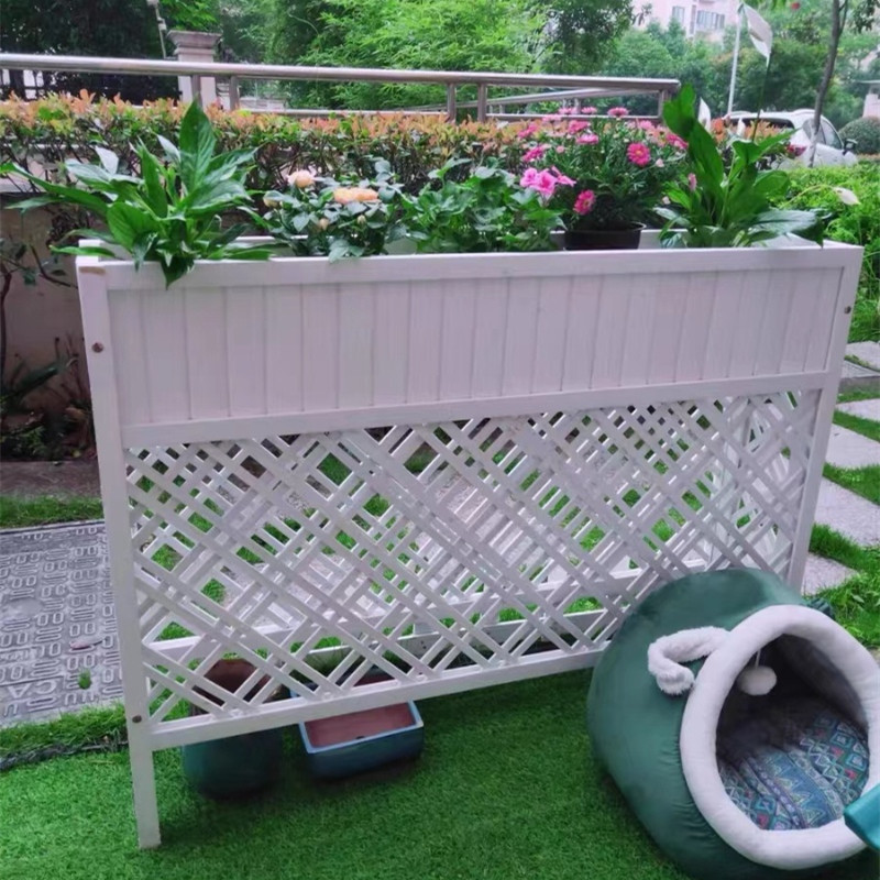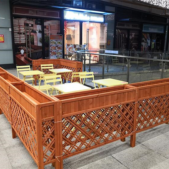 White dining room partition flower trough orange wood flower box outdoor green plant anti-corrosion solid wood mesh grille fence flower shelf