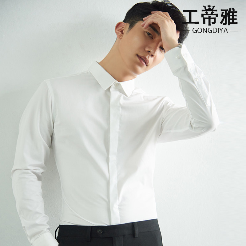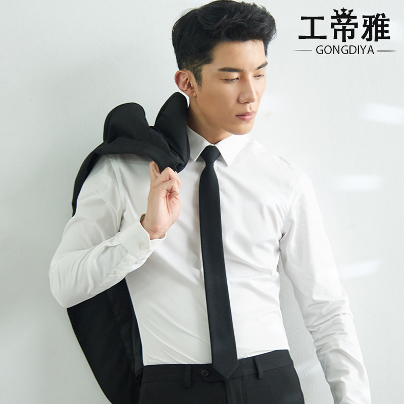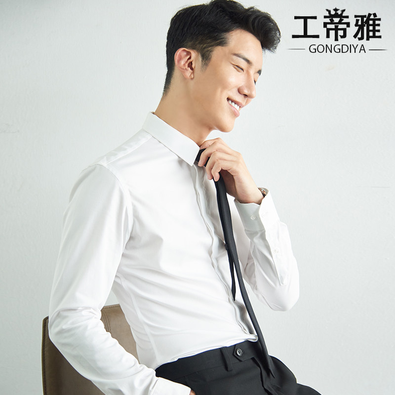 Gongdiya's new iron-free white shirt men's long-sleeved professional slim business interview overalls work shirt small collar