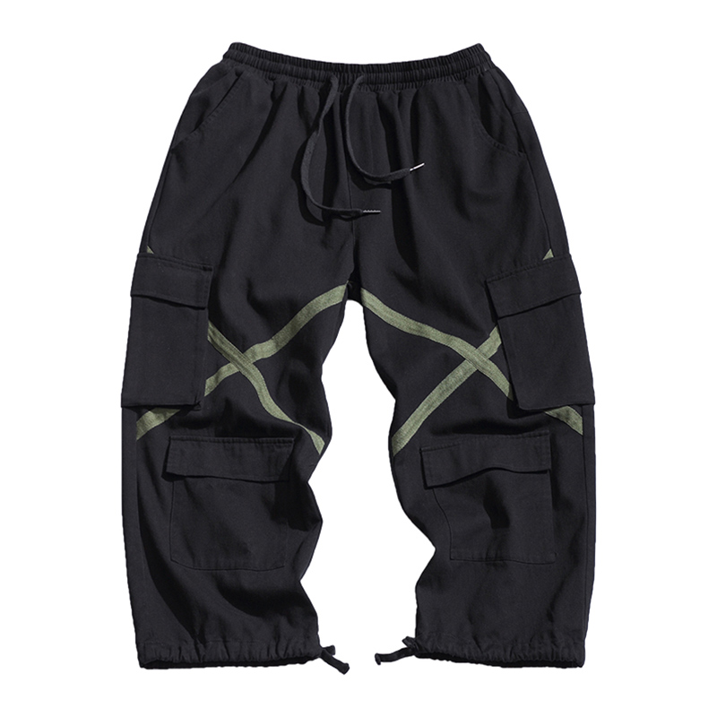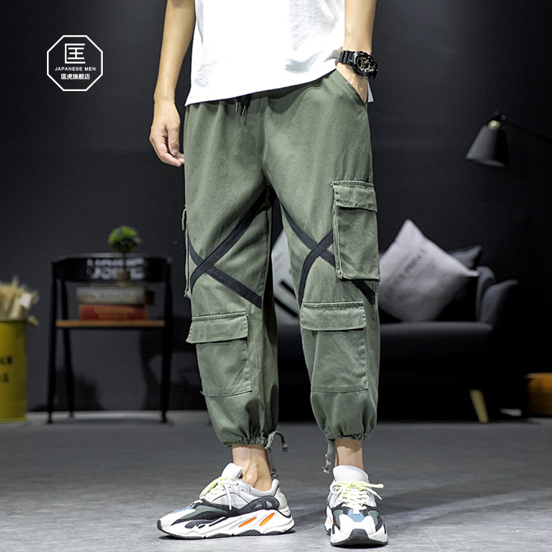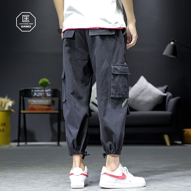 Summer Japanese overalls men's large size loose trendy brand bunched feet cropped pants fat all-match Korean trendy pants - Taobao