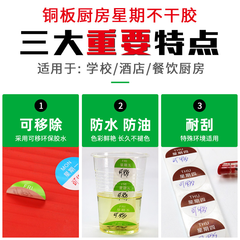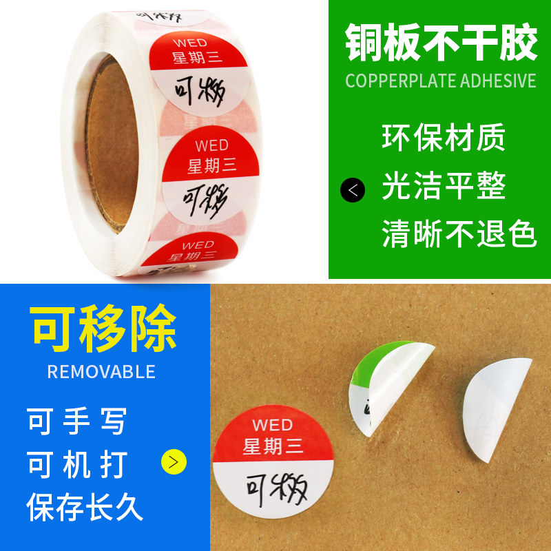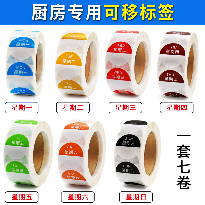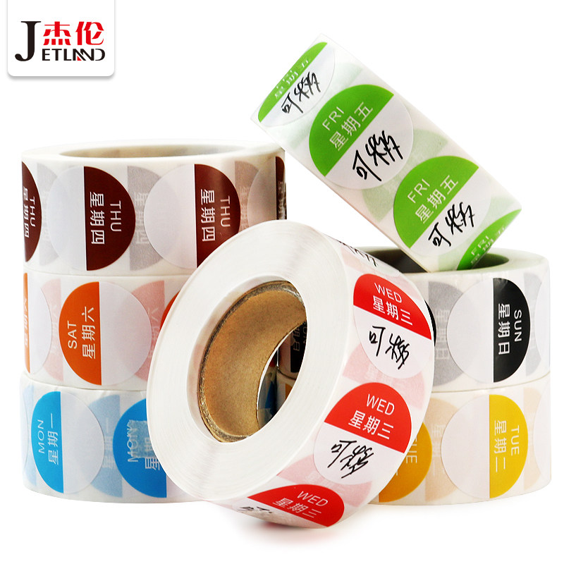 Jaylen Chinese and English round week label sticker Hotel kitchen dining room food hygiene sticker 25*25mm color Copper plate self-adhesive sticker Kitchen dedicated removable label week time sticker