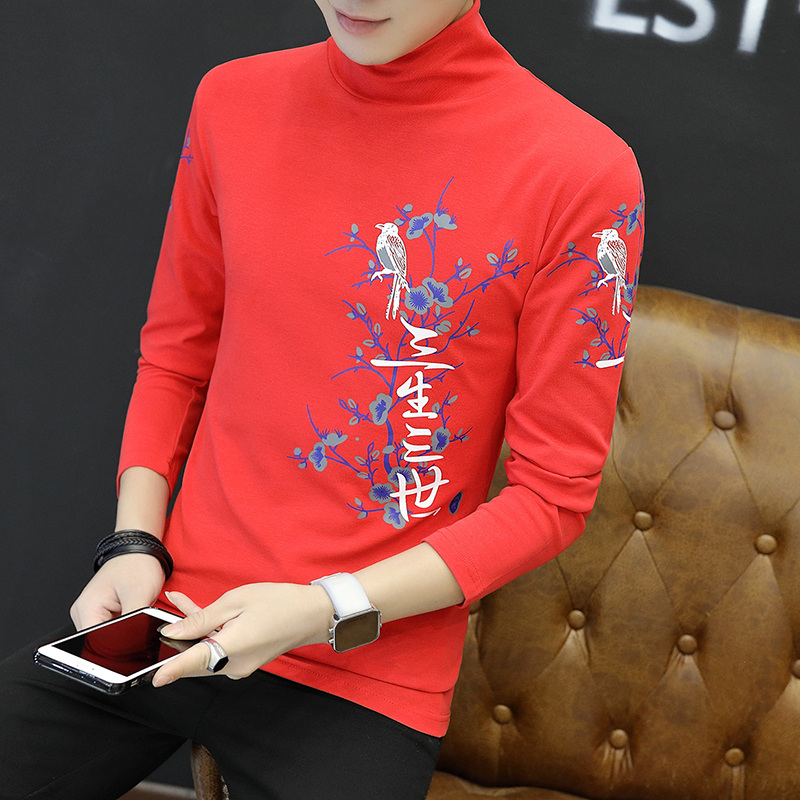 Long-sleeved T-shirt men's autumn tide top base shirt Teen men's men's spring and autumn clothes embroidered printed slim long T