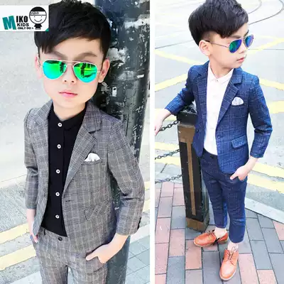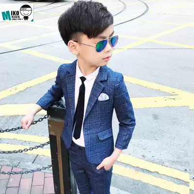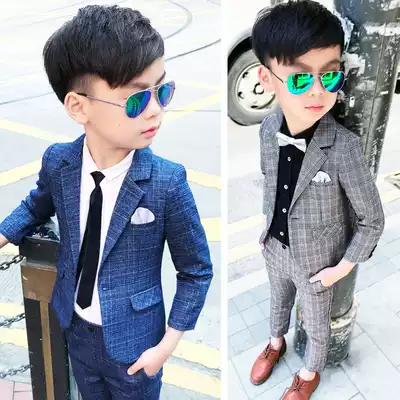 Spring and Autumn children's clothing boys small suit suit Children's plaid suit three-piece dress flower girl presided over the performance