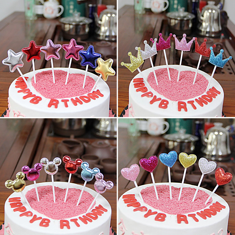 Cake decoration sticker sticker flag glitter pentagram love PU Mickey crown insert card party dessert bakery dress up