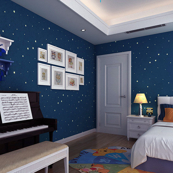 3D cartoon kids room waterproof wipeable non woven wallpaper moon star empty boy girl bedroom background wallpaper