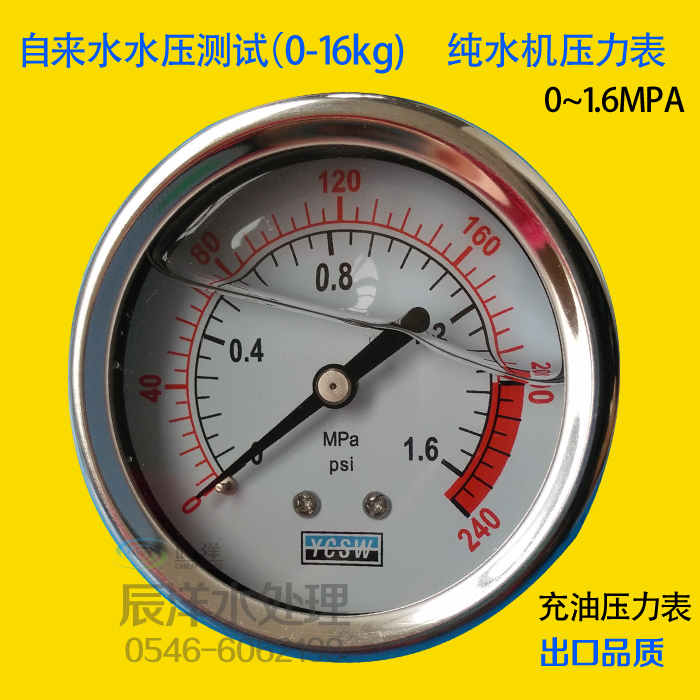 Panel filling oil pressure meter 0-1 6MPA panel quality stainless steel tested tap water pressure membrane front pressure