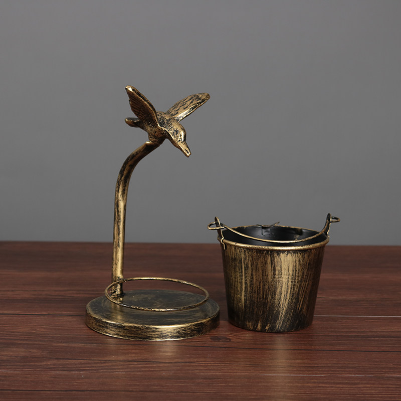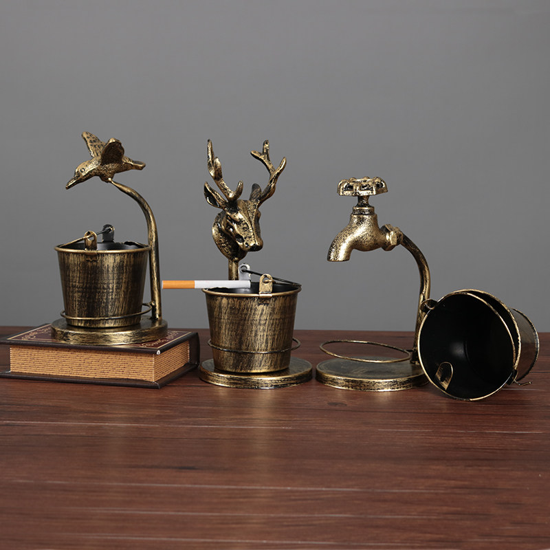 Eurostyle Retro Nostalgia Creative Home Tobacco Ashtray With Bucket Living-room Office Bedroom Personality Decorative Iron Art Pendulum