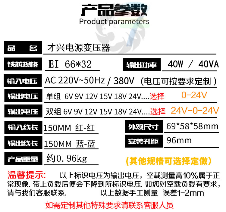40W VA transformer AC20V to 6V9V12V15V18V24V30V36V single and double EI AC power supply voltage