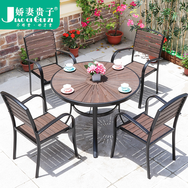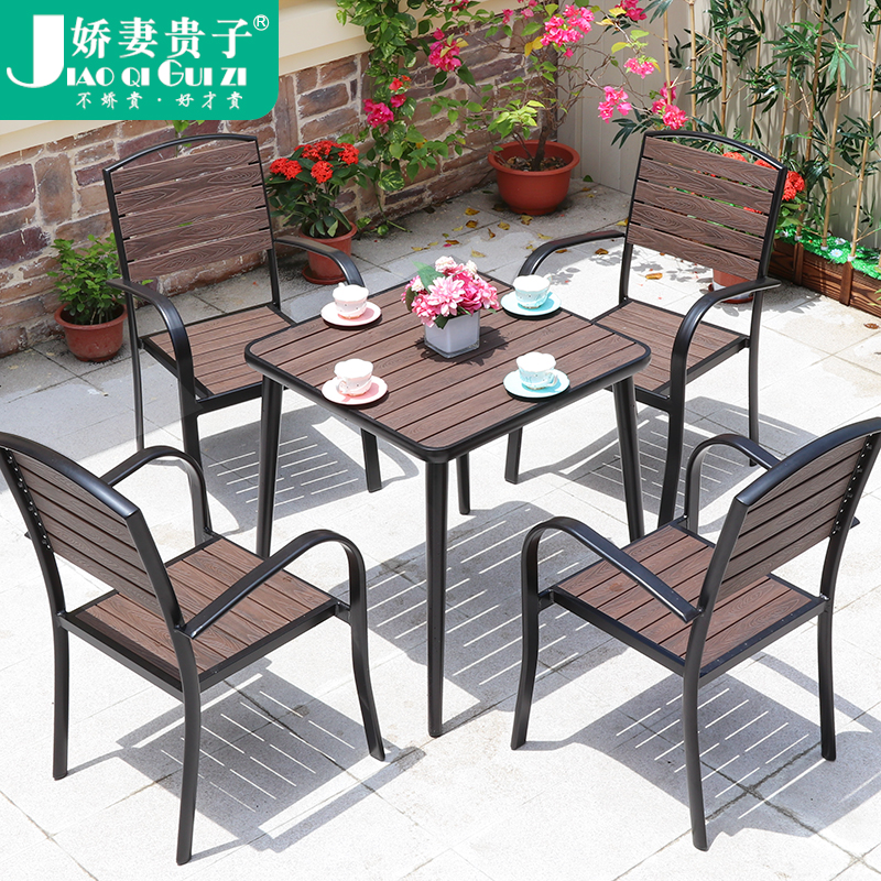 Outdoor balcony Leisure table and chair combination Courtyard garden Outdoor cafe Milk tea shop Anti-corrosion wood WPC wood table and chair