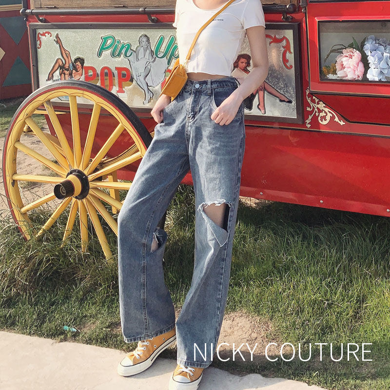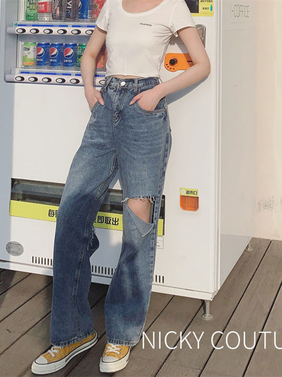 Limited time 3 discount nicky cut design Hole Jeans Women Straight Barrel Loose 2022 New wave High waist