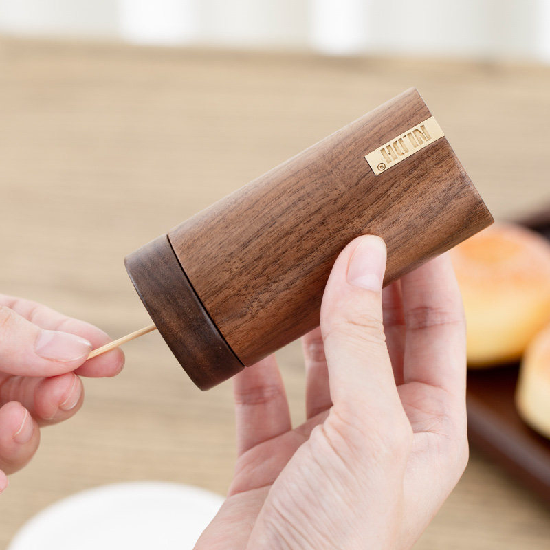 Solid wood toothpick holder Nordic simple black walnut toothpick box living room European creative home portable toothpick jar