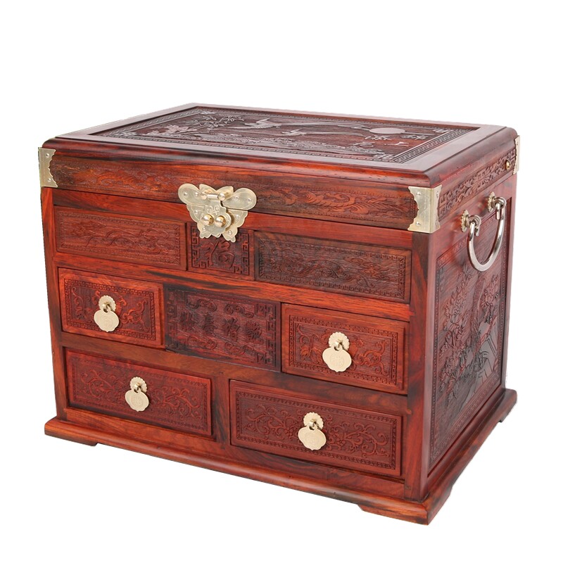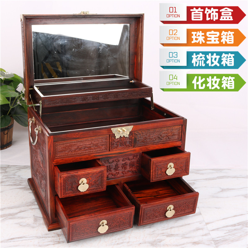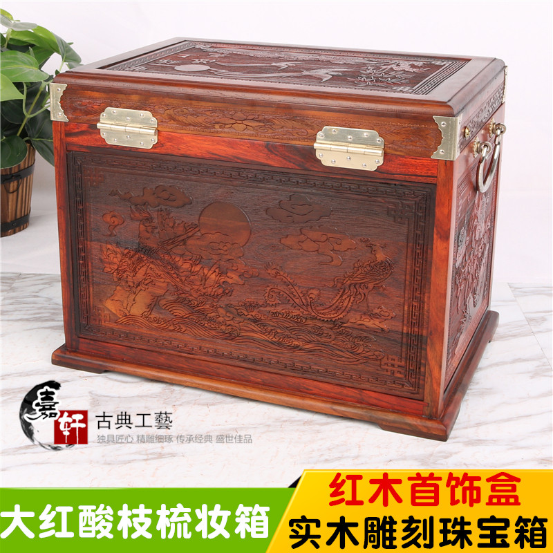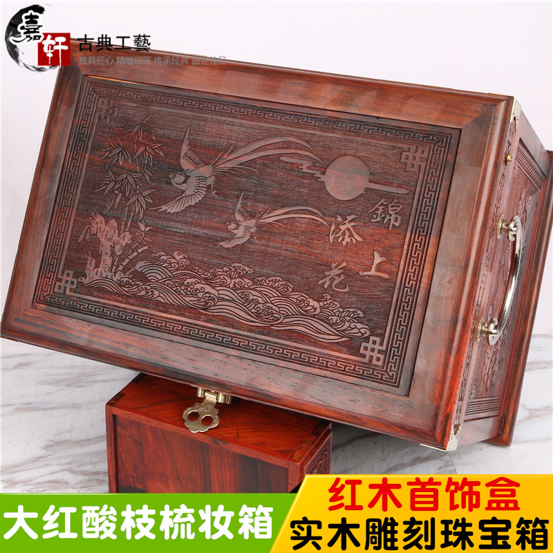 Large Red Acid Branches Ornaments Makeup Mirror Case Baobal Box Red Wood Finely Carved Gold Add Floral Antique Jewelry Containing Box Hem