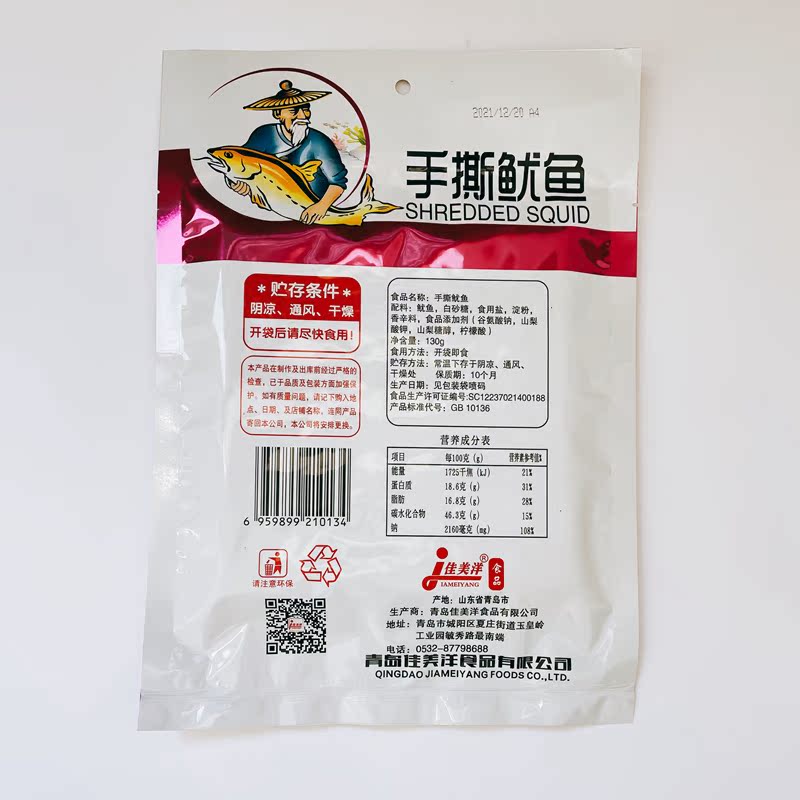 Jiamei Yanghands Rip Squid Qingdao Terproduce Ready-to-eat Seafood Zero Eclipse Organ Squid Sheet 130g Ren 3 pieces