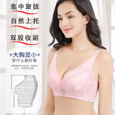 Summer thin underwear women without steel ring breathable large size fat mm gathering adjustment anti-sagging Big Chest show small text bra