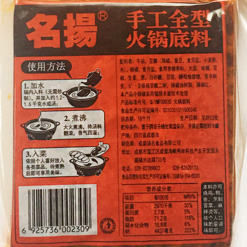Butter, watercress, chili, edible salt, pepper, garlic, ginger, green onion, white sugar, monosodium glutamate, chicken essence, seasoning, soya bean, etc. See the package for details