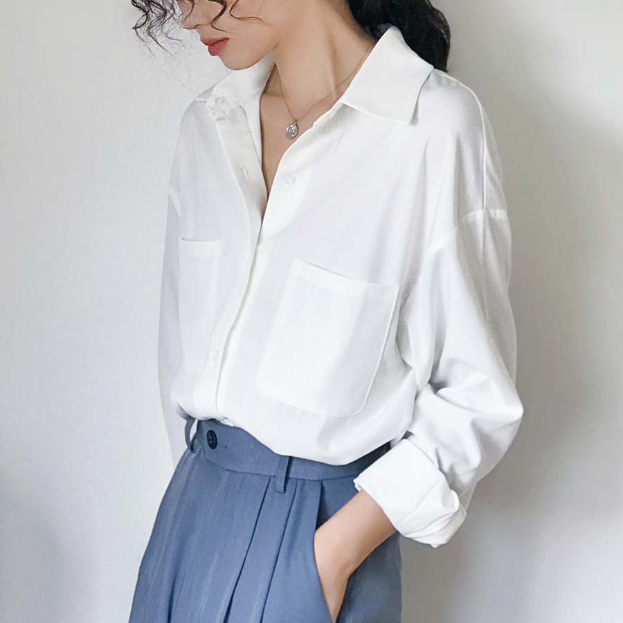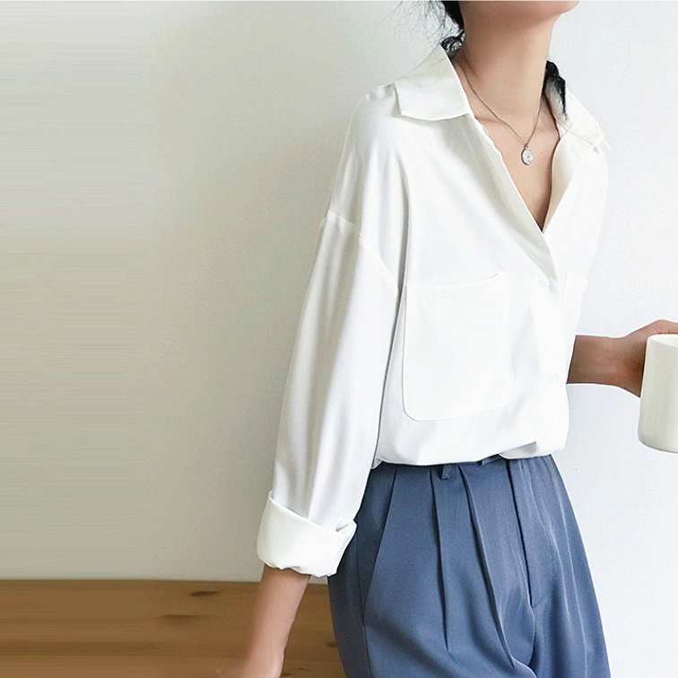 2021 spring new long-sleeved chiffon white shirt women's professional loose casual wild design niche shirt