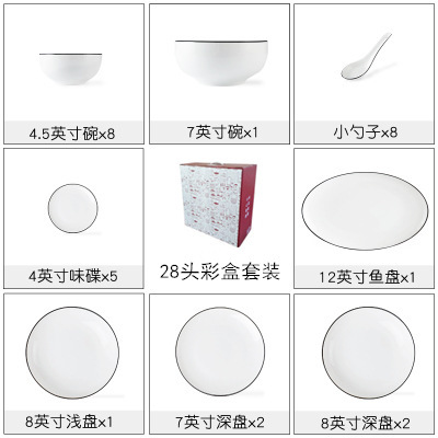 Minimalist Nordic Style Dish Suit Home Cutlery 4 People 8 People Group Eurostyle Ceramic Bowls with dishes Courtesy Box