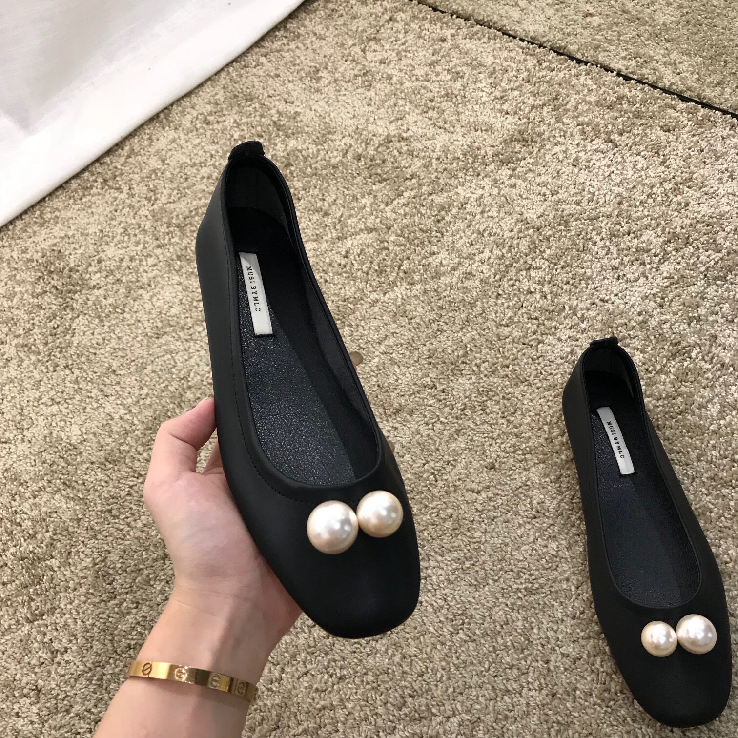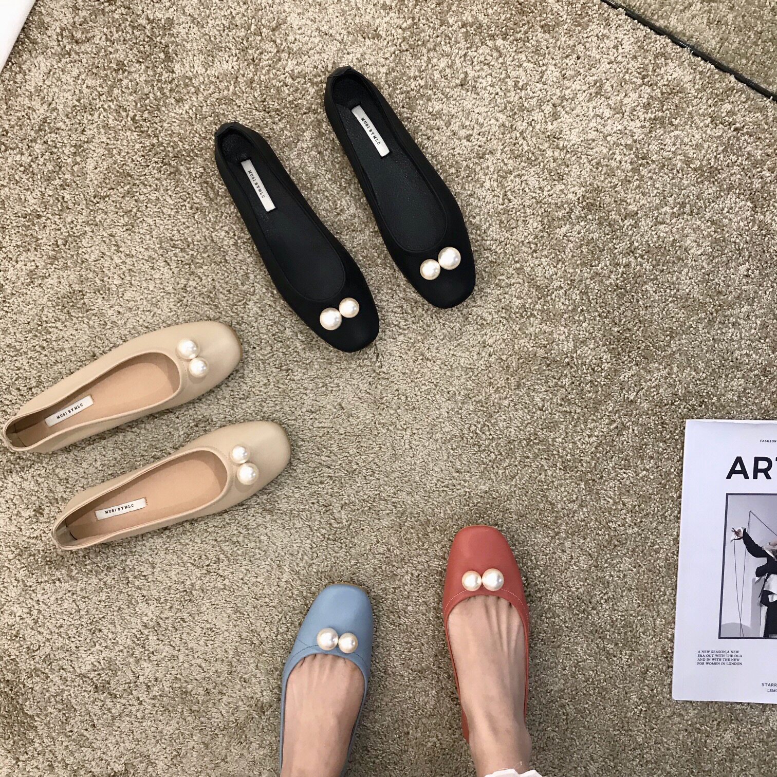 Bean bean single shoe women's shoes autumn 2022 black boat shoes summer evening wind gentle flat bottom granny pearl scoop shoes