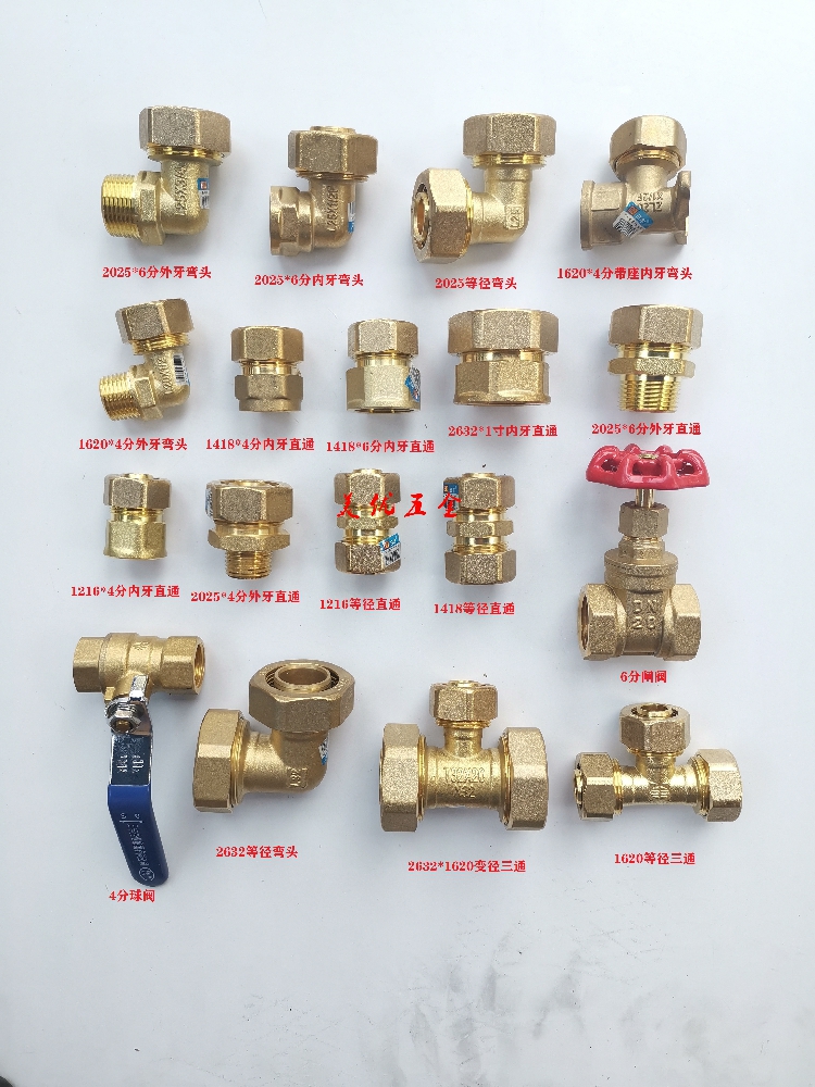 Rifeng 1216 1620 1418 aluminum plastic pipe copper fittings equal diameter tee 2025 2632 elbow straight to inner tooth