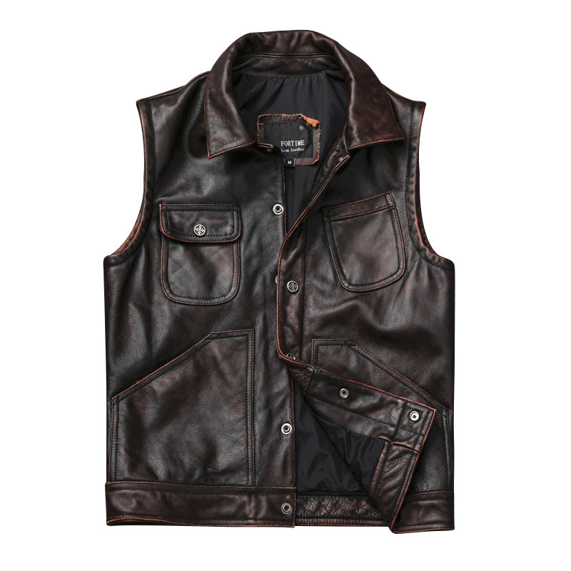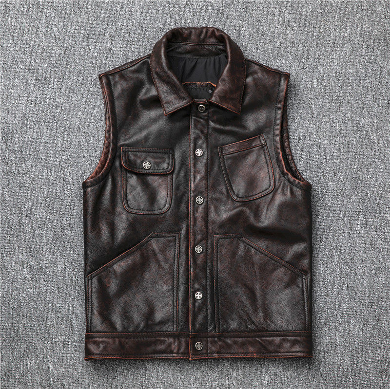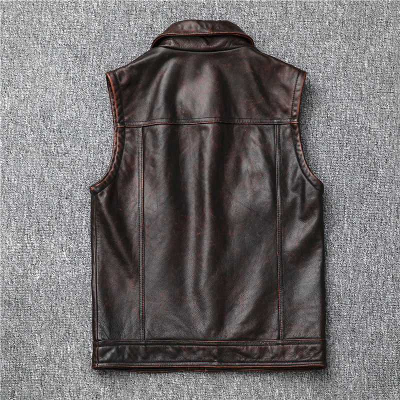 Cow - leather fur coat man repair short skin vest vest crane locomotive clothes over the old retro - old