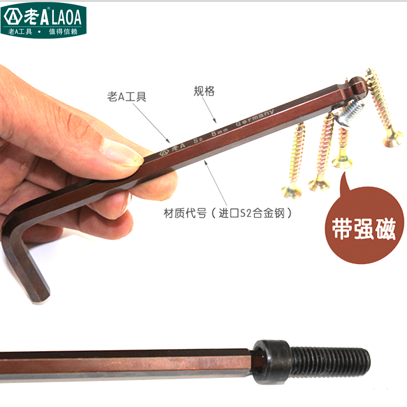 Old A S2 alloy steel long ball head inner hexagon wrench with magnetic single inner hexagon wrench