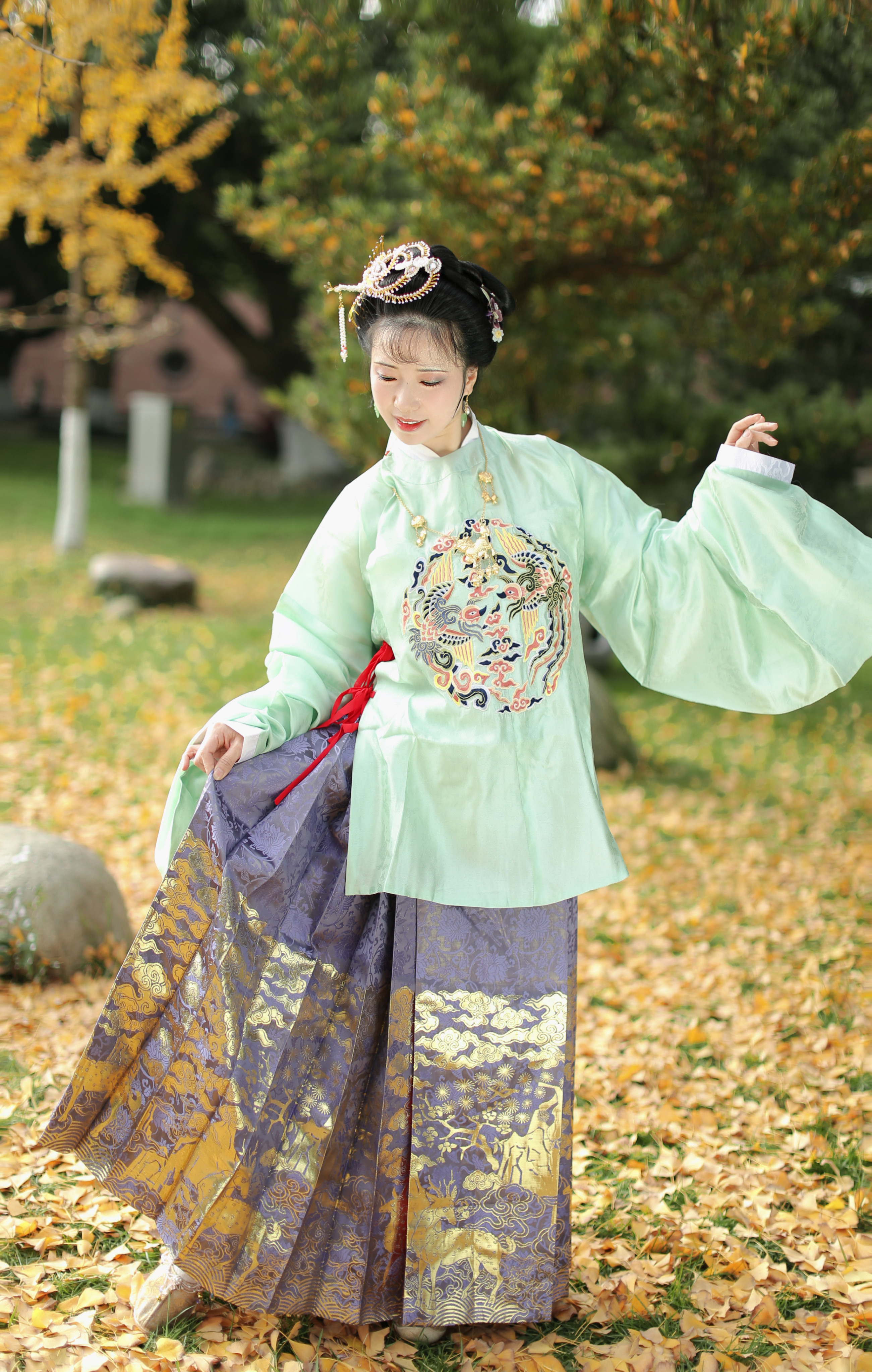 (Guangdong Huaxiang) (formerly 100 tolerated) Horse face dress Activities Hanfu Spot Road Road smooth imitation of the Ming Dynasty textured weave gold