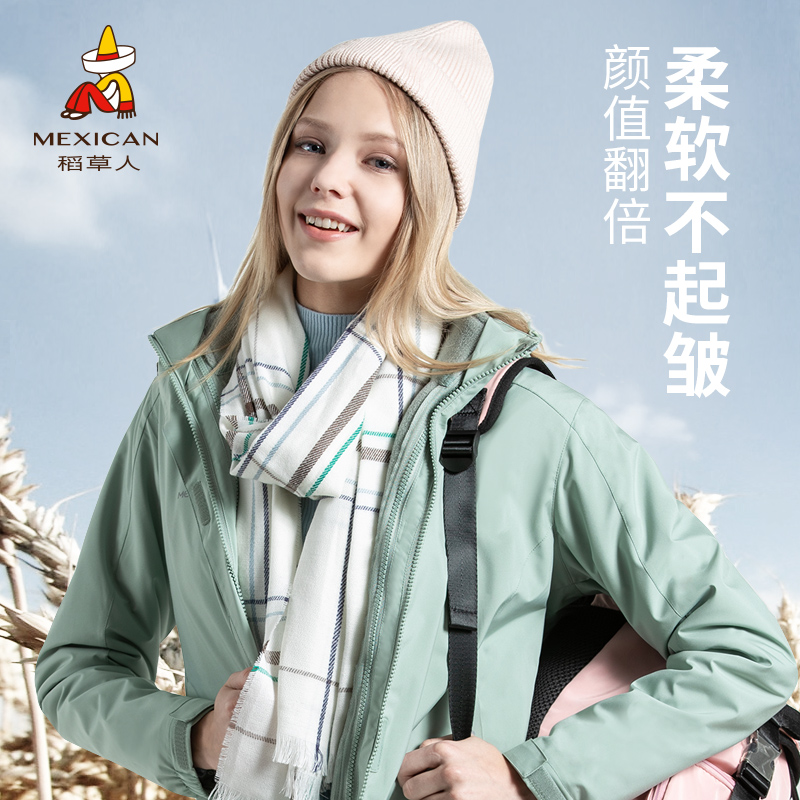 Rice Straw Man Outdoor Autumn Submachine Clothing Women Tide Card Three-in-one Detachable Plus Suede Thickened Mountaineering Suit Male Windproof Jacket