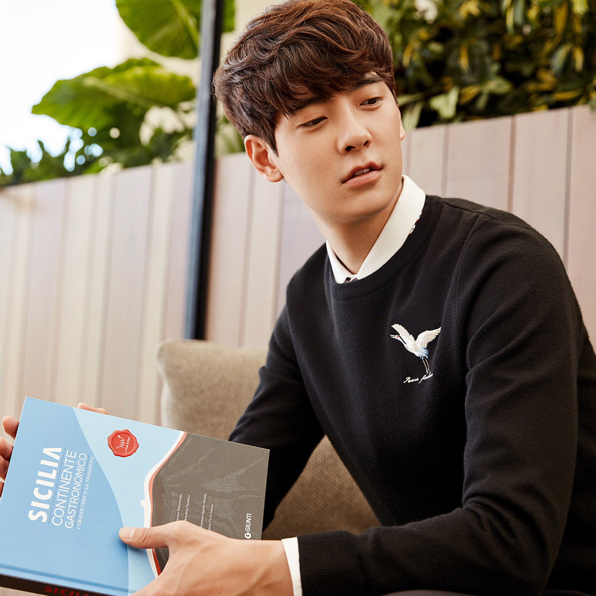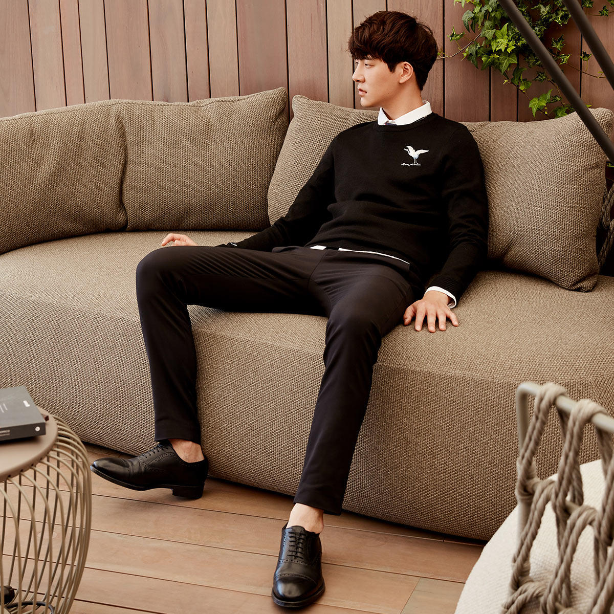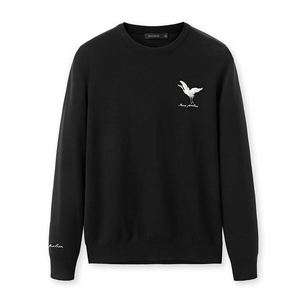 Peacebird Men's Youth Round Neck Knit Sweater Business Casual Fashion Korean Embroidered Pullover Sweater