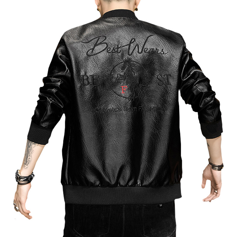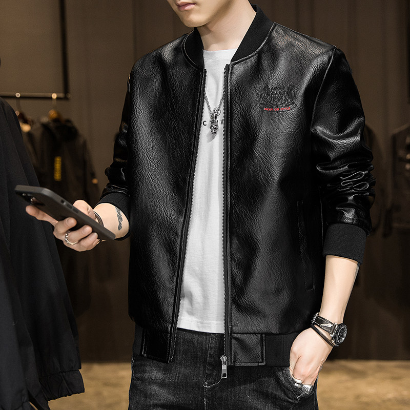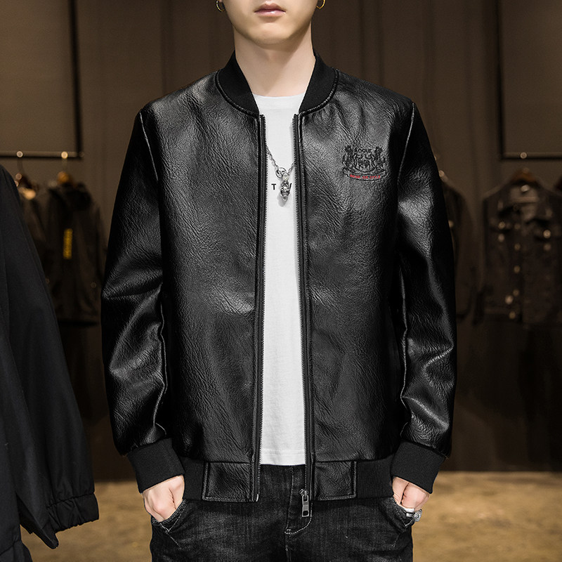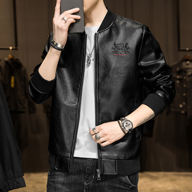Faux leather leather men's pilot jacket coat Korean fashion slim embroidery spring autumn motorcycle leather clothes