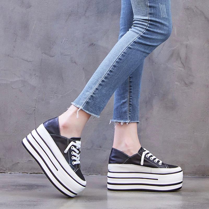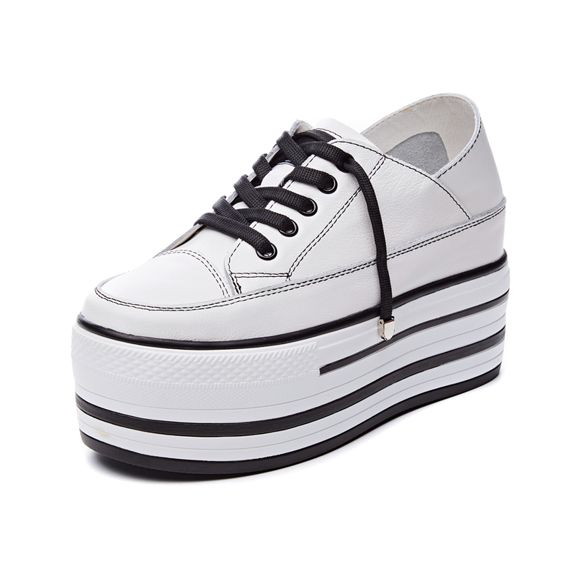 Ocargo real leather heightening small white shoes women's thick bottom pine pastry 100 hitch a foot pedal sloth outside wearing casual two-wearing single shoes