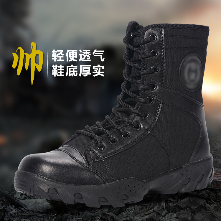 Canvas high-barrel combat boots for men and women spring and autumn breathable ultra-light zipper for training Marine security climbing shoes