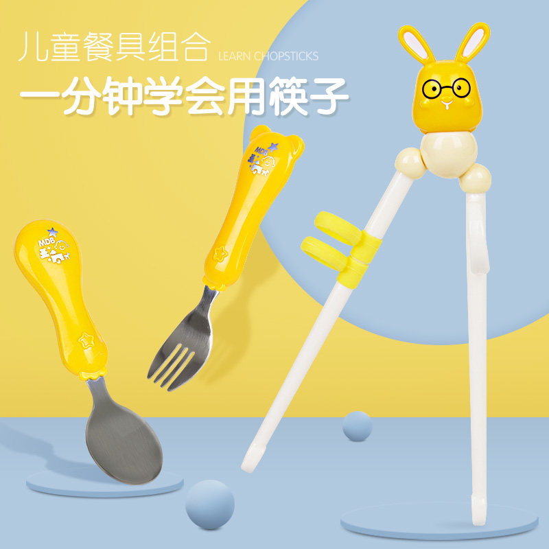 MDB children's chopsticks training chopsticks cartoon fork spoon tableware children learn to eat auxiliary practice chopsticks household one or two paragraphs