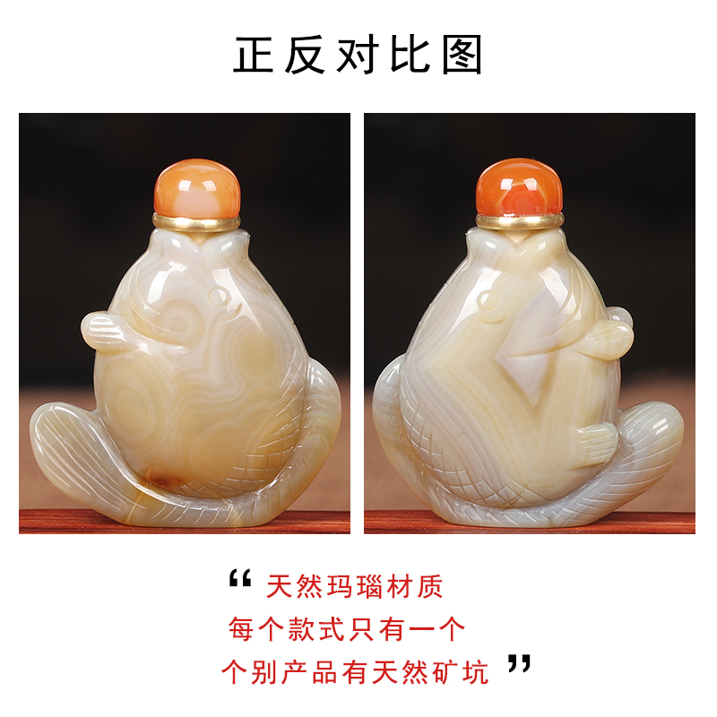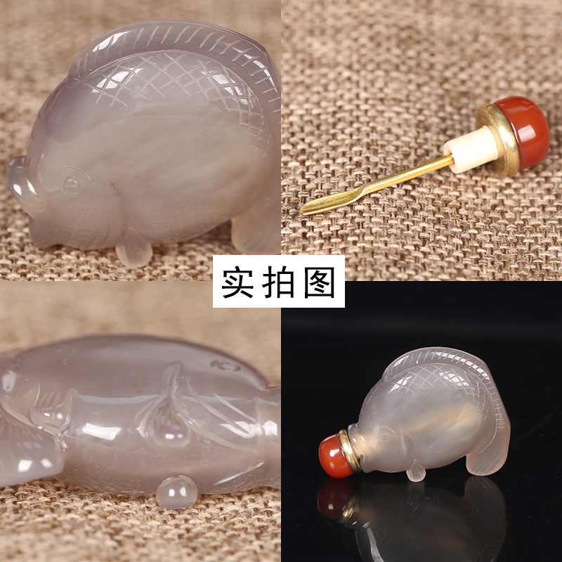 Royal gift natural agate carved fish snuff bottle to send friends gift collection special Handicraft ornaments