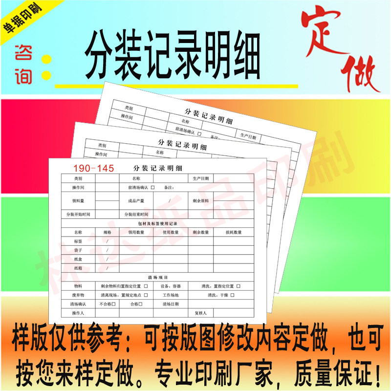 Custom-made feed inspection report sheet Printing outsourcing processing application sheet Material storage ledger Production schedule